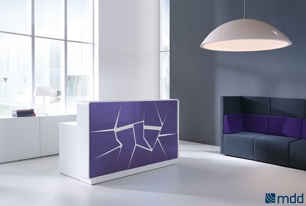 Protiklady se přitahují. Polární léto - ledové kry zahřeje záře s osvětlení. Výjmečný design této recepce je u rčen pro lidi s fantazií, kteří ocení eleganci a neradi jednotvárnost. Navrženo pro MDD Kancelářský nábytek Francouzem libanonského-arménského původu.